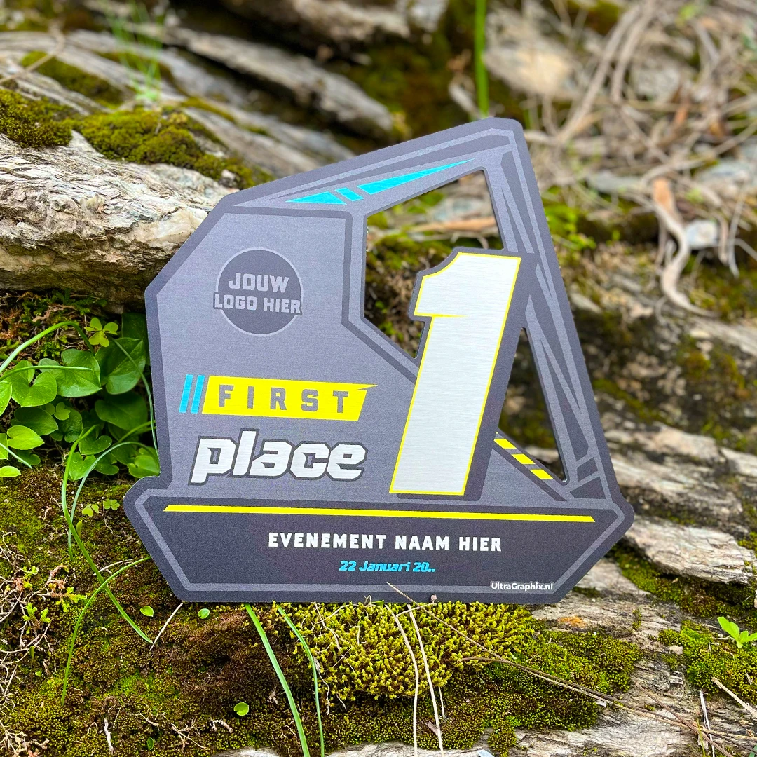 Het Brave bordje combineert stoere lijnen met overzichtelijk design en ruimte voor twee foto’s. Het is geschikt voor uiteenlopende sporten en evenementen.