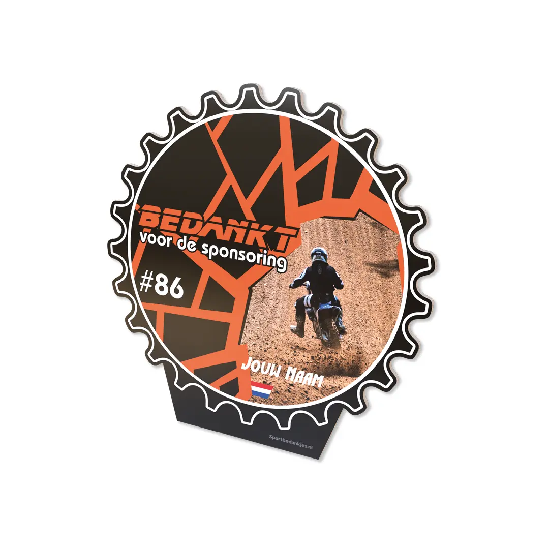Als sporter weet je hoe belangrijk sponsoren zijn; zij maken het mogelijk dat jij volop kunt genieten van jouw passie. Dat waardeer je enorm! Reden genoeg om ze aan het einde van het seizoen op een unieke manier te bedanken. De gepersonaliseerde bedankjes van Sportbedankjes.nl helpen je hier graag bij. Wij ontwerpen onder andere sponsorbedankjes voor motorsport, autosport, wielersport, vechtsport, watersport en de dartwereld. Zit jouw sport er niet bij? Geen probleem, wij maken graag een ontwerp op maat voor jou.